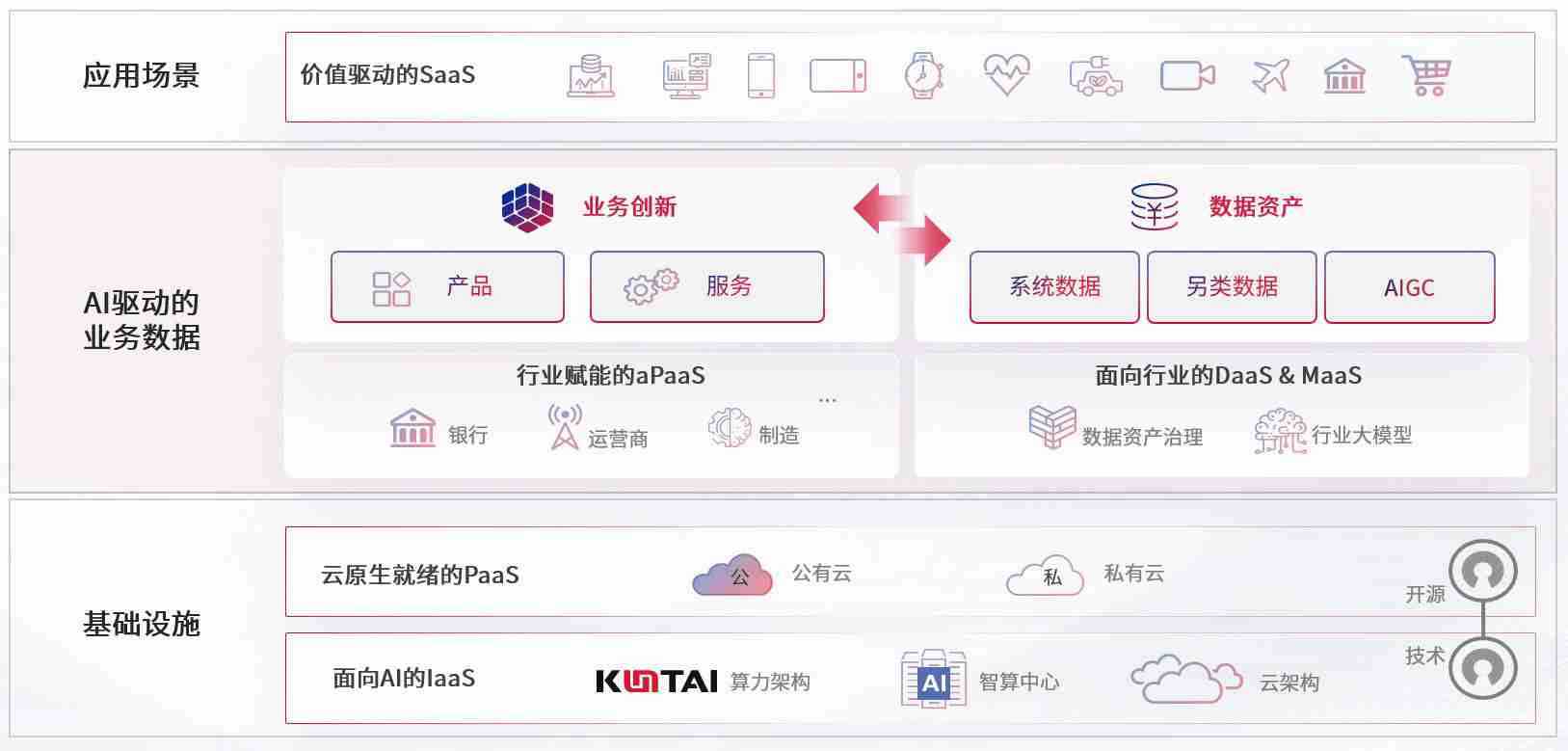 数字时代,,,,围绕企业数字化转型的关键要素,,,风速体育数码开创性的提出数云融合战略和技术体系框架,,,,着力在云原生、、、数字原生、、AI原生和信创产业上架构产品和服务能力,,,,为处在不同数字化转型阶段的快消零售、、、汽车、、金融、、、医疗、、、政企、、教育、、、运营商等行业客户提供泛在的敏捷IT能力和融合的数据驱动能力,,,构建跨界融合创新的数字业务场景和新业务模式,,,助力企业级客户建立面向未来的核心能力和竞争优势,,,全面推动社会的数字化、、、智能化转型升级。。
